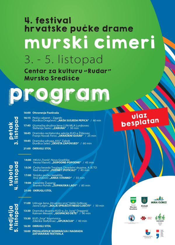 Od 3. do 5. listopada 2025. Mursko Središće bit će domaćin 4. Festivala hrvatske pučke drame „Murski cimeri“. U tri dana publiku očekuje 11 kazališnih predstava te prilika za upoznavanje kulturnih i prirodnih vrijednosti Međimurja i krajobraza uz rijeku Muru.